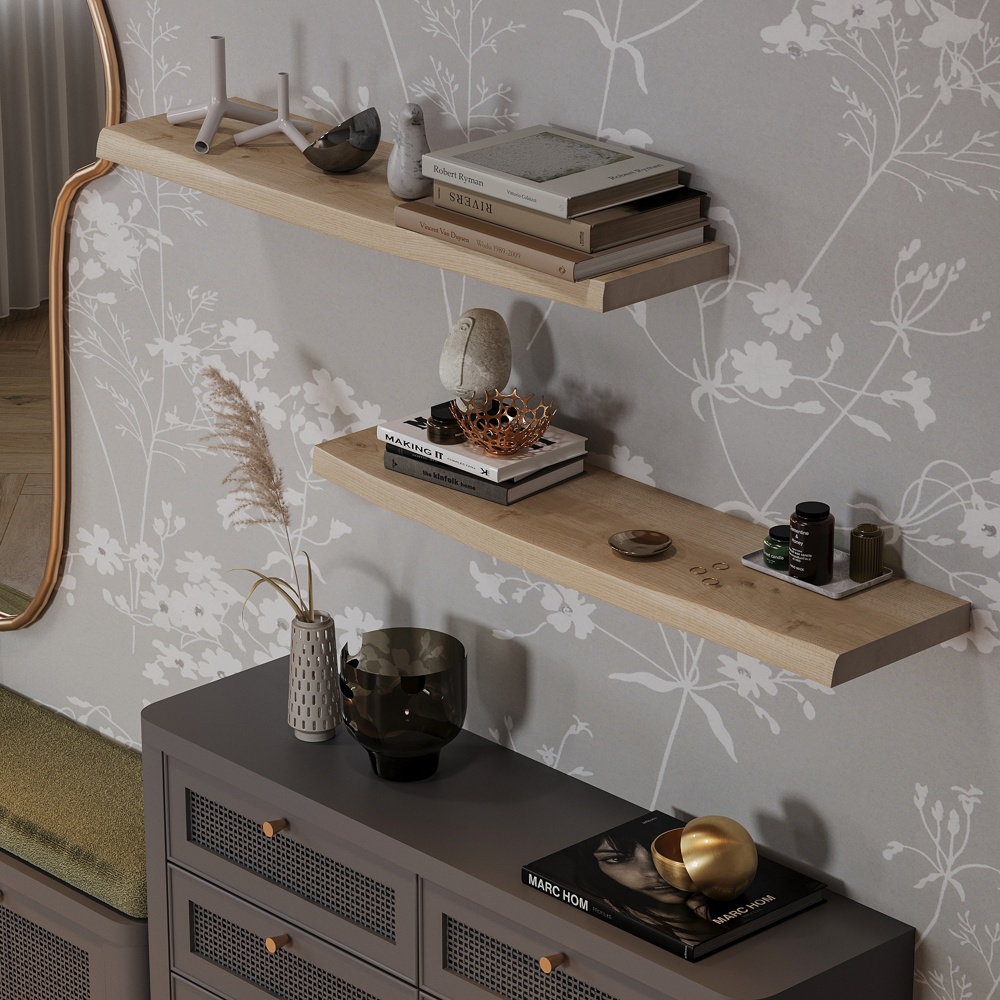 Wil je een zwevende wandplank? We bieden ook de mogelijkheid om een zwevende eiken wandplank aan te schaffen, inclusief bevestigingsmateriaal. Zwevende planken aan de muur zorgen voor een strakke uitstraling, omdat de bevestiging volledig uit het zicht blijft. Zo creëer je op eenvoudige manier een rustige look in elke ruimte, terwijl de plank toch stevig en functioneel blijft. Ook is er geen verschil in draagkracht ten opzichte van planken met zichtbare dragers, waardoor je dezelfde mogelijkheden hebt voor het plaatsen van boeken, decoratie of andere accessoires.