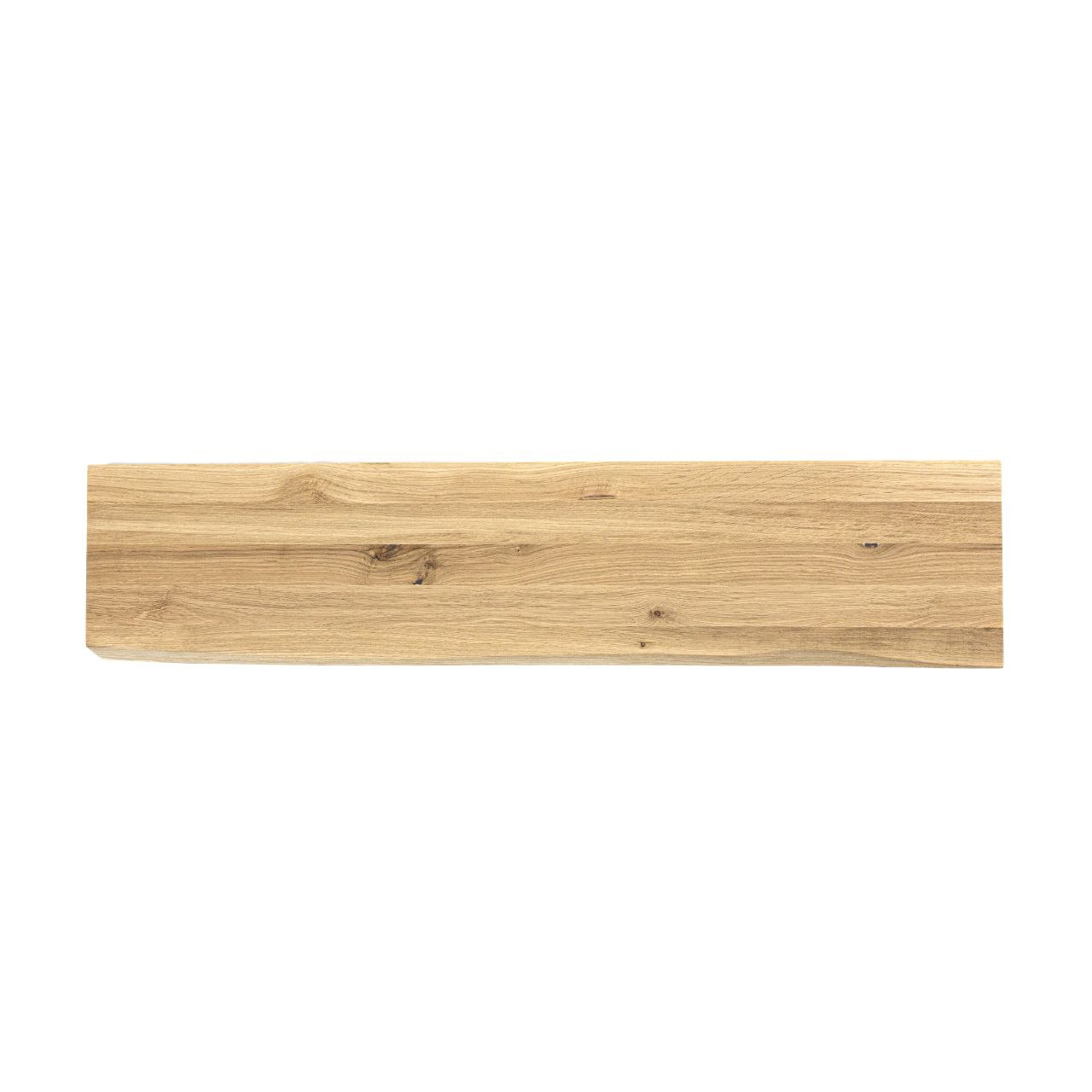 Onze eiken plank voor aan de wand is gemaakt van de onbehandelde stam van een eikenboom, wat je ook duidelijk terug kunt zien in het product. Aan één zijde heeft de plank een karakteristieke boomstam kant. Door deze natuurlijke rand kan de diepte per plank licht variëren. Het massieve eikenhout maakt de boomstam plank bovendien bijzonder duurzaam. Wil je de plank in de toekomst opfrissen? Dan kun je deze eenvoudig opnieuw opschuren. De wandplanken van massief eiken worden voor veel verschillende doeleinden gebruikt, zoals het tentoonstellen van decoraties en om boeken op te bergen in de woonkamer, keuken of werkruimte.