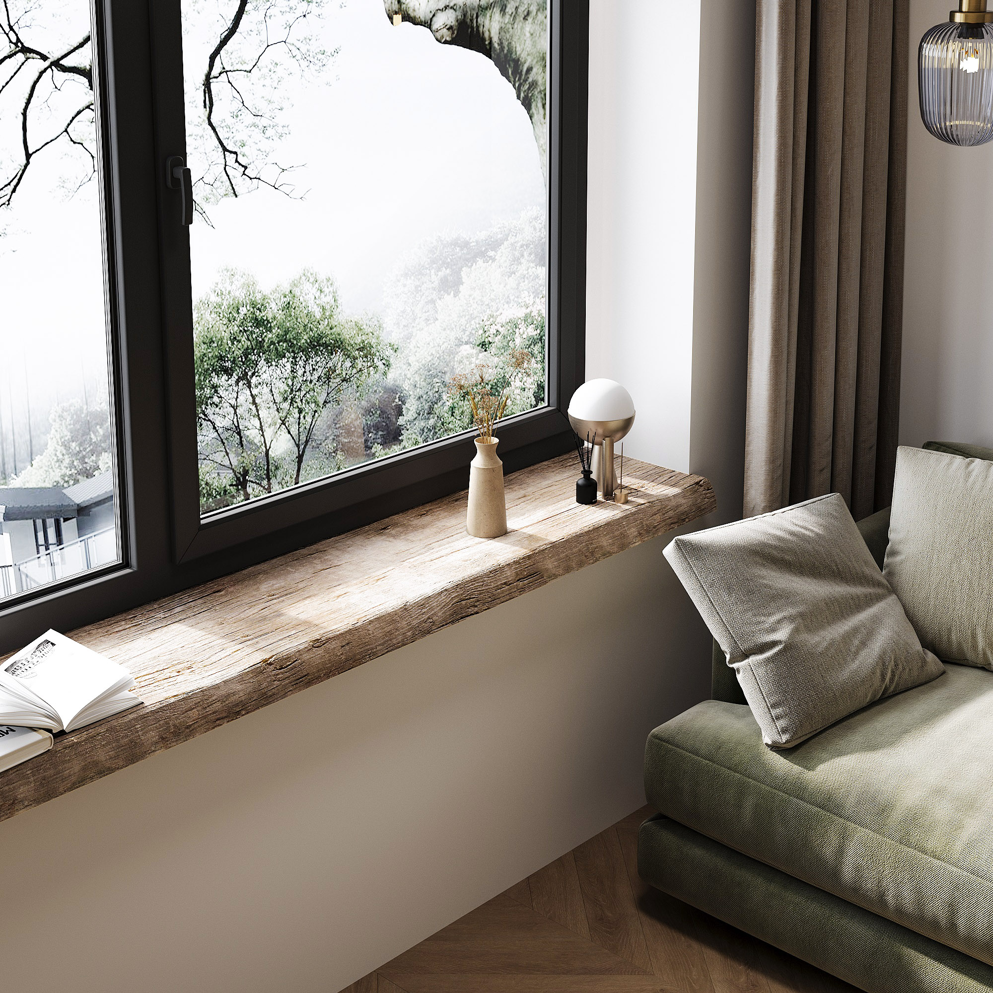 - Decoratief element: Gebruik de vensterbank als een plek om decoraties zoals planten, fotolijstjes en kaarsen te plaatsen. Het natuurlijke hout voegt warmte en charme toe aan elke kamer.