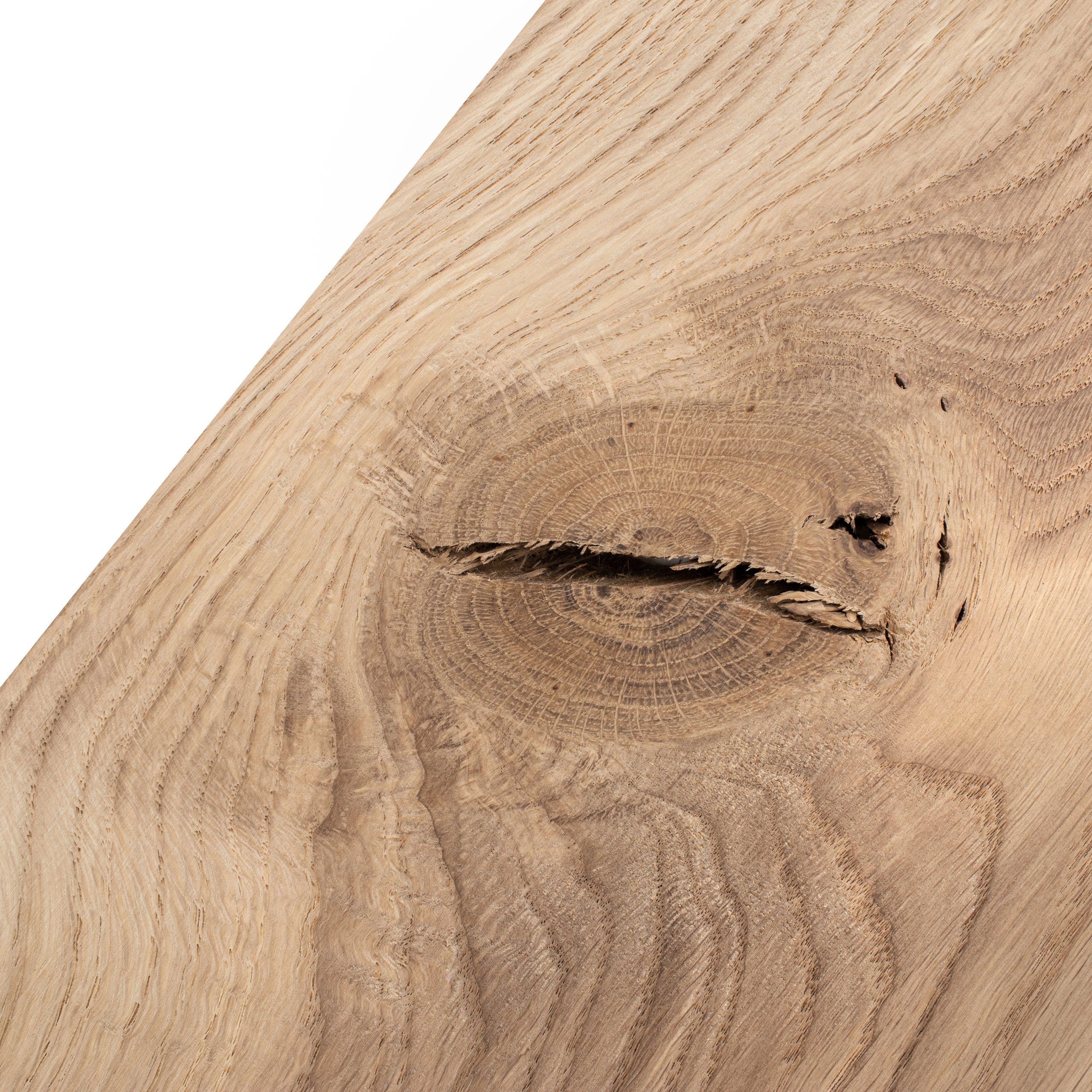 Onze eiken planken zijn als zijnde rustiek gesorteerd. Dit houdt in dat deze eiken planken knoesten en scheuren mogen bevatten, deze knoesten zijn niet opgevuld.