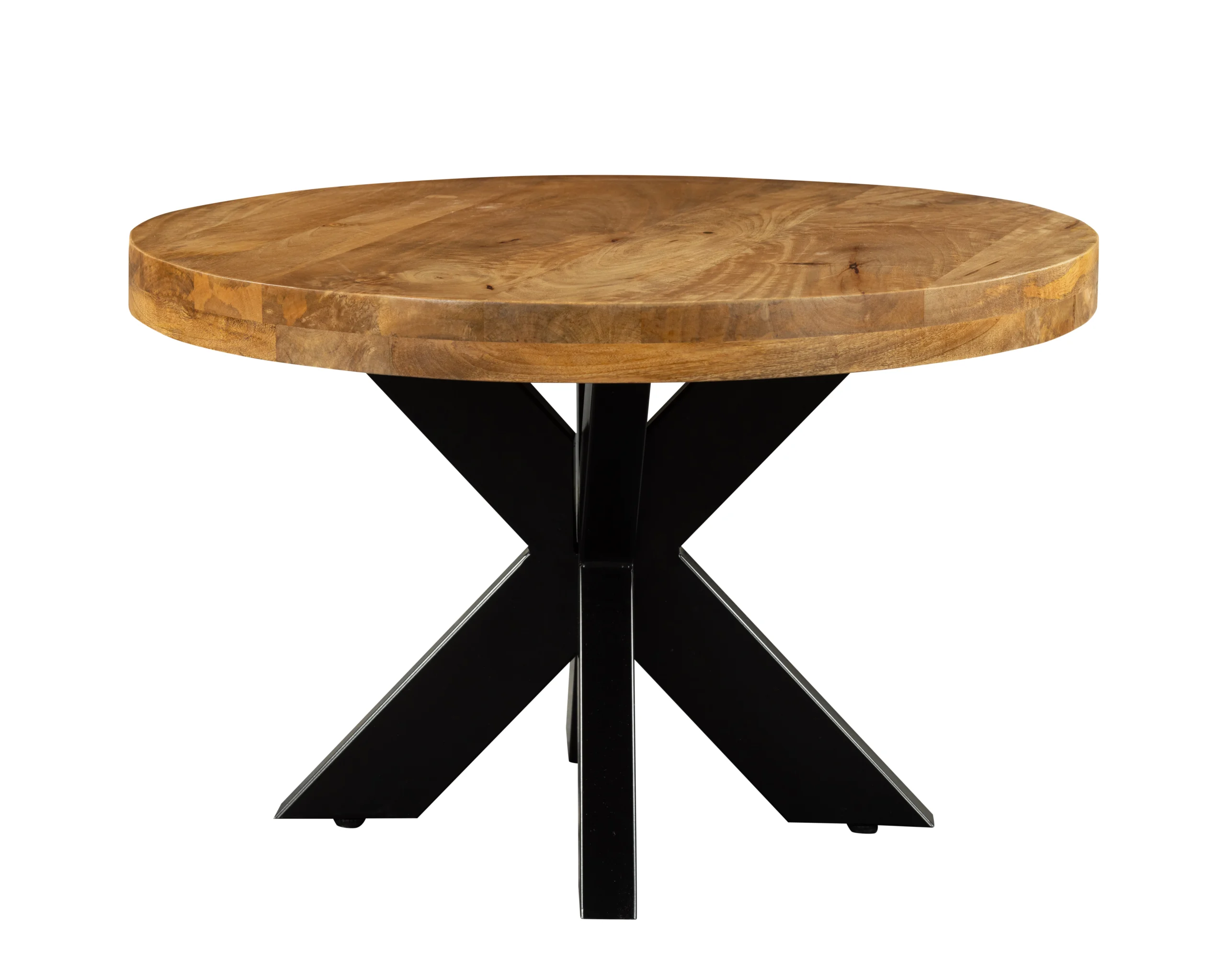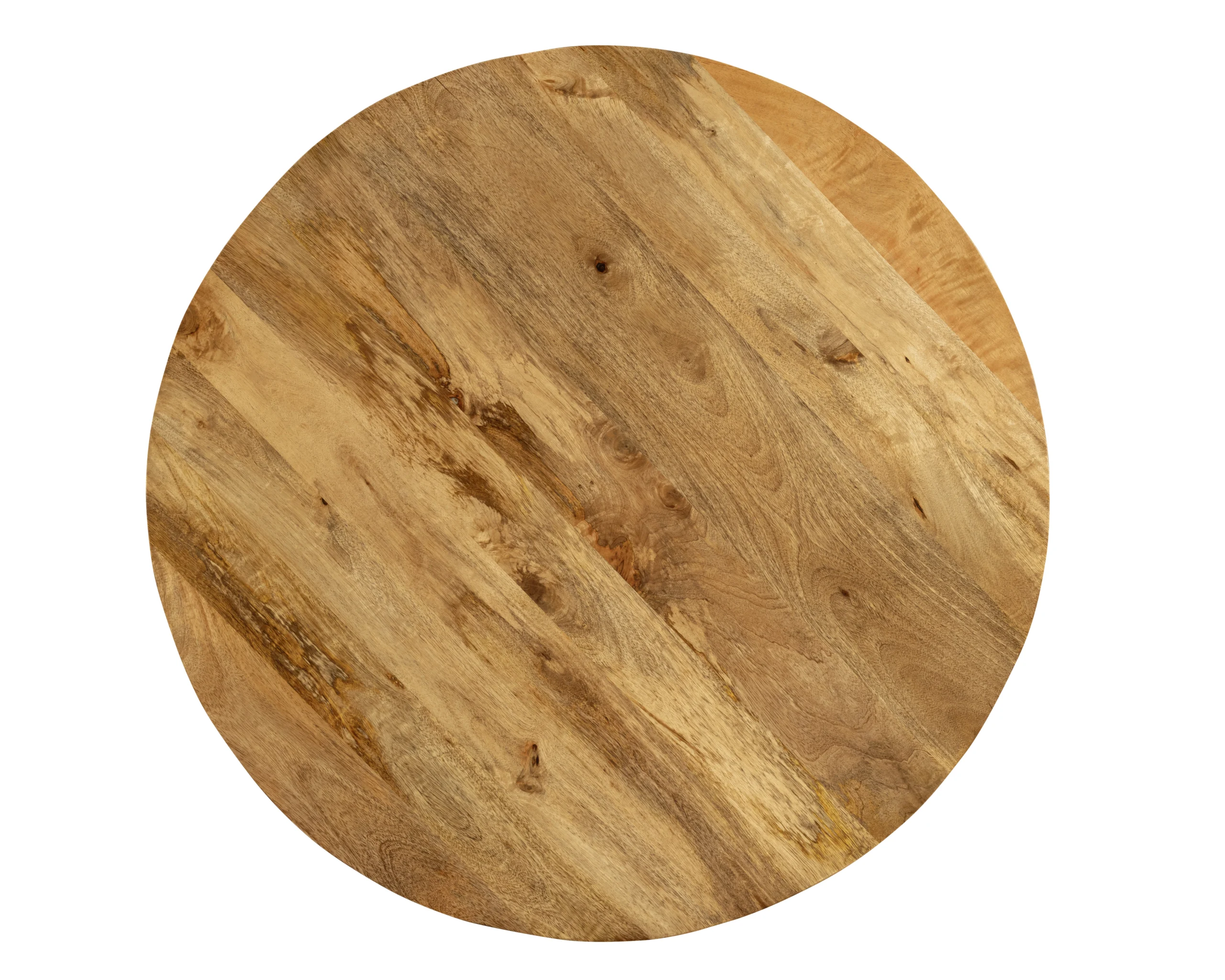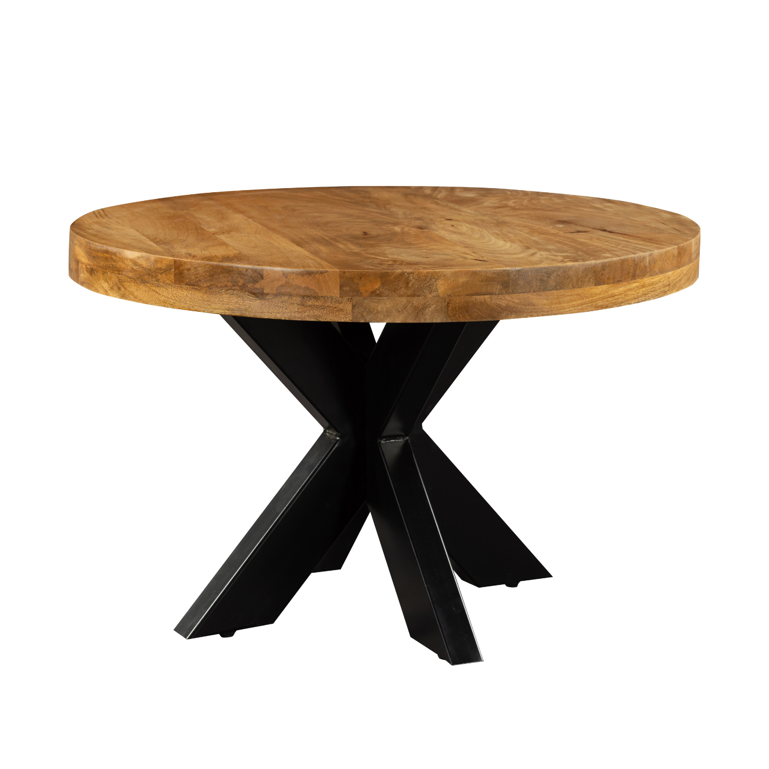 Deze ronde salontafel van massief mangohout combineert een warme uitstraling met een stoer karakter.