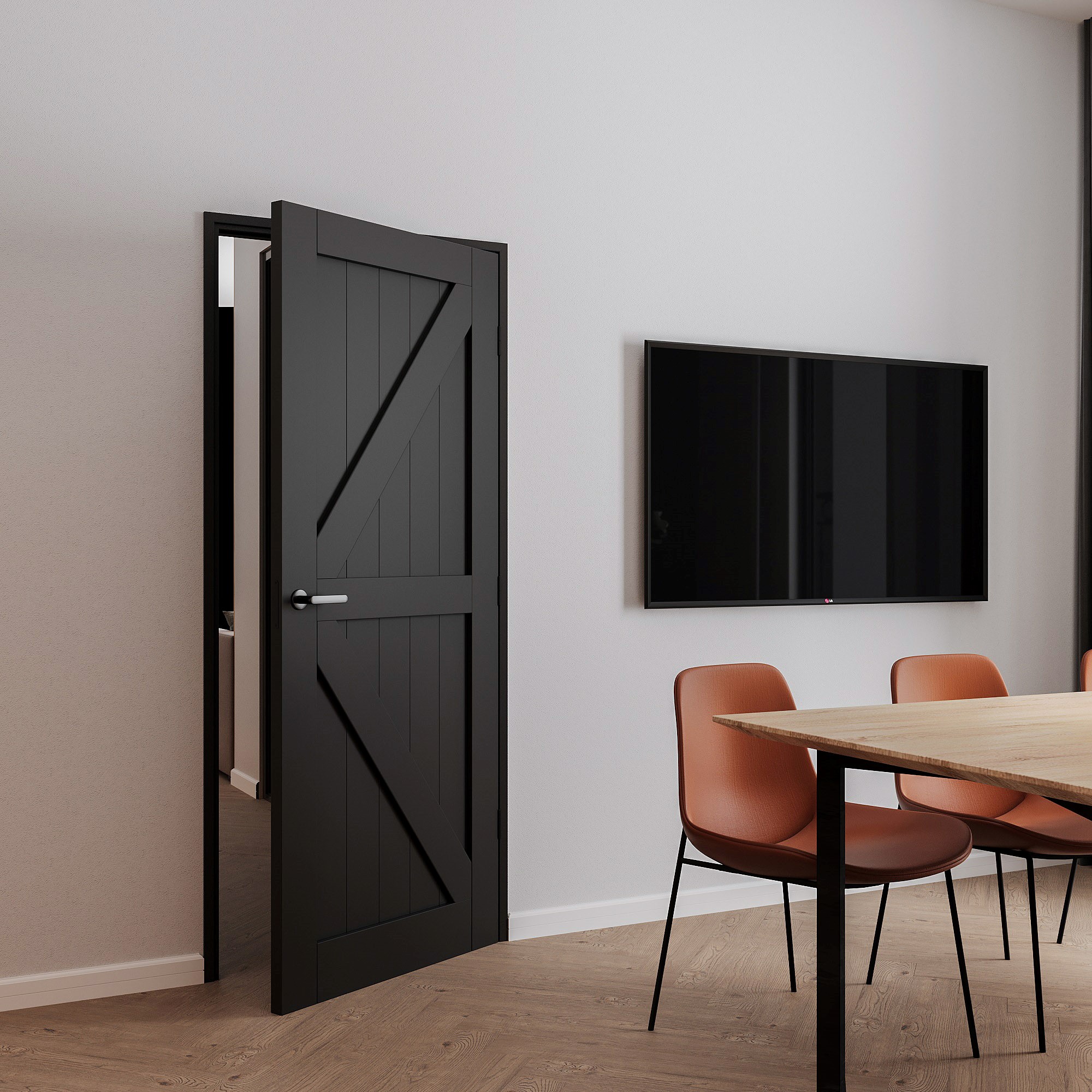 Je kunt de zwarte barndeur op meerdere manieren monteren. Hang hem in je bestaande kozijn als stompe deur of monteer hem aan een rail als schuifdeur – ideaal als je ruimte wilt besparen. Voor een moderne draai is montage als taatsdeur ook mogelijk. Welke manier je ook kiest: goed hang- en sluitwerk is essentieel. Deurbeslag en bijpassende zwarte scharnieren zijn los verkrijgbaar en passen perfect bij deze deur.